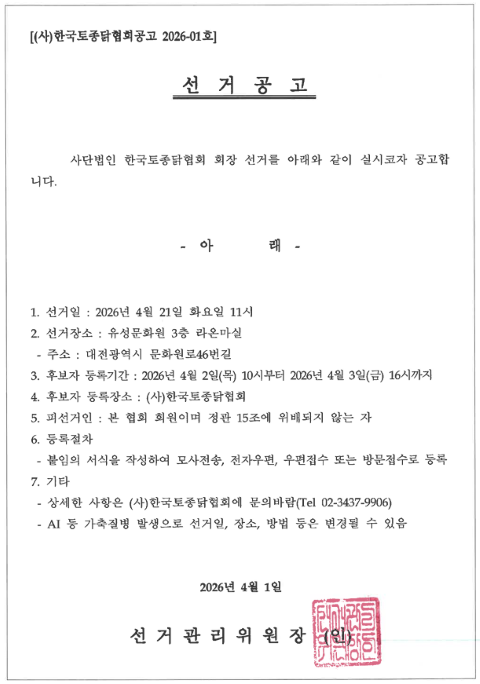 [공지] (사)한국토종닭협회 회장 선거 공고
