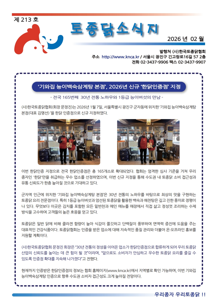 26년 2월 토종닭 소식지